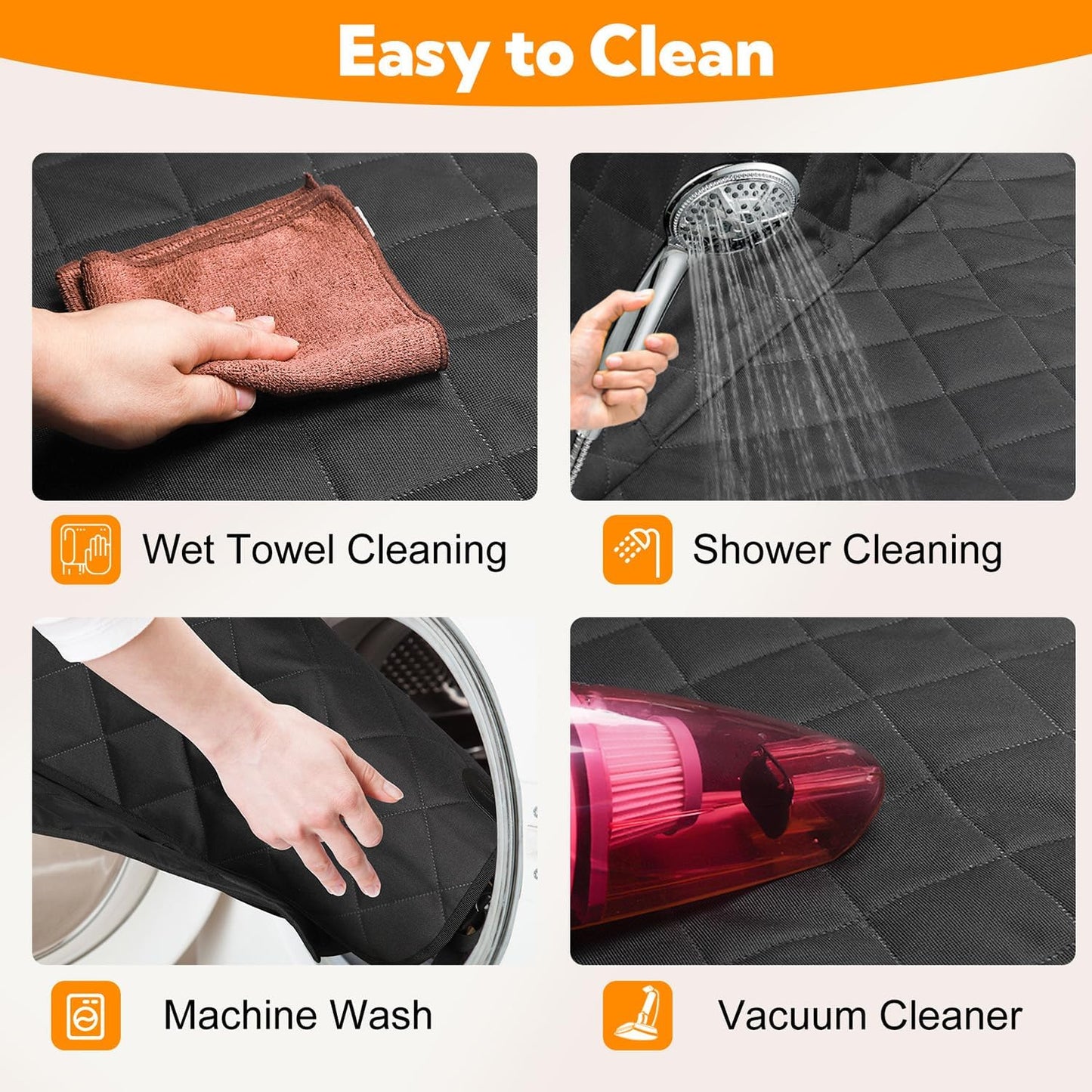 - HandWash-Cleaning this backseat dog cover is easy with a damp cloth, vacuum cleaner, and shower head.